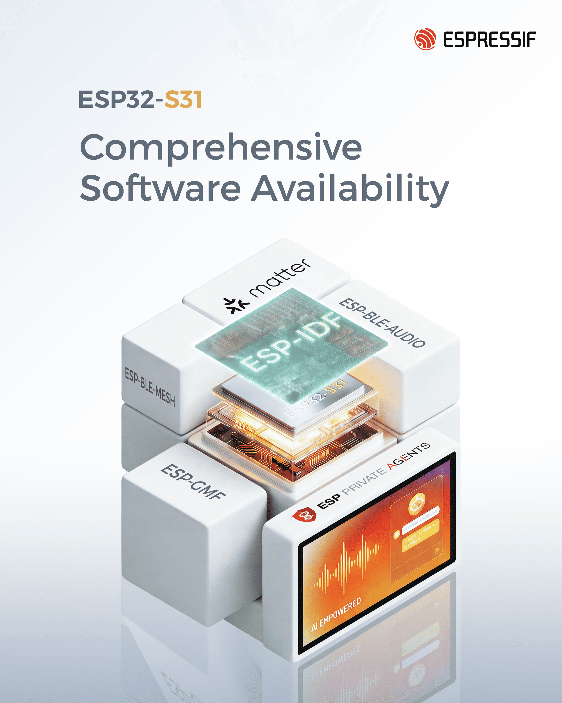 ESP32-S31 sẽ được hỗ trợ đầy đủ trong hệ sinh thái phần mềm mã nguồn mở của Espressif, bao gồm ESP-IDF (IoT Development Framework), ESP-Matter dành cho các thiết bị chuẩn Matter và ESP-GMF phục vụ các ứng dụng đa phương tiện. Nhờ đó, nhà phát triển có thể nhanh chóng xây dựng và triển khai các giải pháp IoT hiện đại trên một nền tảng thống nhất và linh hoạt.