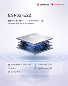 Bộ đồng xử lý kết nối Wi-Fi 6E đầu tiên của Espressif, được thiết kế cho các ứng dụng yêu cầu kết nối ba băng tần hiệu năng cao, độ ổn định và tốc độ vượt trội.